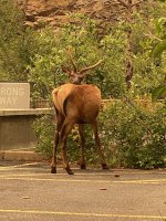 Fall is definitely pushing summer out bit by bit each day. The aspen, grasses, and bushes are getting lighter with some true gold and red leaves here and there on the ground. Fall flowers are out. All but one lonely hummingbird is at my feeder now – this is such a change because at the height of summer there would be 15-20 birds buzzing around the feeder. Elk are bugling and gathering “their” cows, bucks are losing their fuzz, the bears are stripping every berry bush in sight, and the elk calves and deer fawns are losing their spots. The nights are in the low 40s now and days are cool – it is a great time in the mountains.